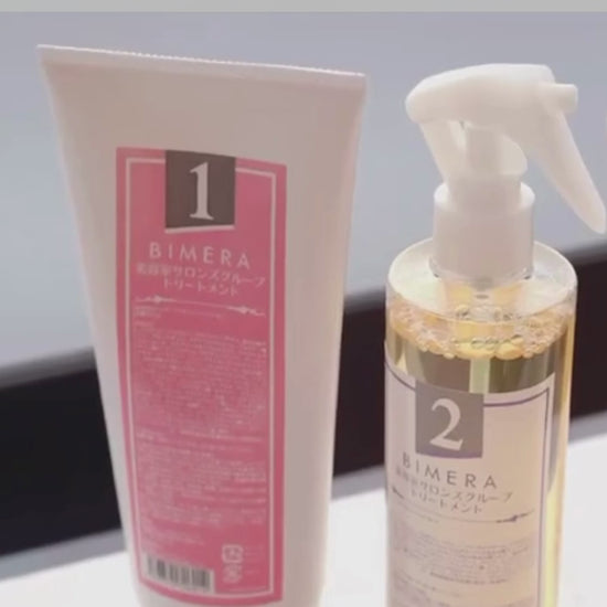 ■BIMERAトリートメントNo.1: 水、ジメチコン、グリセリン、セタノール、ハチミツ、加水分解デンプン、アモジメチコン、ステアリルアルコール、パルミチン酸エチルヘキシル、ステアルトリモニウムブロミド、ラウロイルグルタミン酸ジ(フィトステリル/オクチルドデシル)、ミリストイルメチル-β-アラニン(フィトステリル/デシルテトラデシル)、加水分解ケラチン、ラノリン、コレステロール、加水分解シルク、ヒアルロン酸ヒドロキシプロピルトリモニウム、シスチン、アルギニン、セリン、バリン、イソロイシン、トレオニン、プロリン、ヒスチジン、フェニルアラニン、PCA、PCA-Na、グリシン、アラニン、アスパラギン酸、セラミド1、セラミド2、セラミド3、セラミド5、セラミド6Ⅱ、白金、イソステアロイル加水分解コラーゲンAMPD、ヒアルロン酸Na、アルギン酸Na、BG、PG、カラメル、乳酸Na、クエン酸Na、クオタニウム-18、クオタニウム-33、シクロペンタシロキサン、アミノプロピルジメチコン、オレス-2、テトラオレイン酸ソルベス-60、ベヘントリモニウムクロリド、イソプロパノール、エタノール、フェノキシエタノール、エチドロン酸、香料 ■BIMERAトリートメントNo.2: "水、PG、乳酸Na、PCA-Na、アルギニン、DPG、イソペンチルジオール、ジラウロイルグルタミン酸リシンNa、セテアラミドエチルジエトニウムサクシノイル加水分解エンドウタンパク、(ジヒドロキシメチルシリルプロポキシ)ヒドロキシプロピル加水分解シルク、加水分解ケラチン、加水分解シルク、セリン、バリン、イソロイシン、トレオニン、プロリン、ヒスチジン、フェニルアラニン、ジヒドロキシプロピルアルギニンHCl、アスパラギン酸、PCA、グリシン、アラニン、グリセリン、BG、クエン酸、塩化Na、コカミドプロピルベタイン、クオタニウム-33、PPG-5セテス-10リン酸、(C12-14)パレス-12、メチルパラベン、エチルパラベン、フェノキシエタノール、香料 水:高知県産海洋深層水配合<保湿成分>■BIMERAトリートメントNo.3: 水、加水分解デンプン、ステアリルアルコール、ジメチコン、オレス-2、セタノール、ベヘントリモニウムクロリド、アモジメチコン、γ-ドコサラクトン、アーモンド油、ラウロイルグルタミン酸ジ(フィトステリル/オクチルドデシル)、グリコシルトレハロース、ミリストイルメチル-β-アラニン(フィトステリル/デシルテトラデシル)、ダイズステロール、分岐脂肪酸(C14-28)、脂肪酸(C14-28)、ヒアルロン酸ヒドロキシプロピルトリモニウム、加水分解シルク、ミリストイルプルラン、セテアラミドエチルジエトニウムサクシノイル加水分解エンドウタンパク、加水分解水添デンプン、アルギン酸Na、ポリオレイン酸スクロース、グリセリン、BG、プロパンジオール、イソプロパノール、アミノプロピルジメチコン、テトラオレイン酸ソルベス-60、クオタニウム-18、キトサンヒドロキシプロピルトリモニウムクロリド、ジステアリルジモニウムクロリド、ジココジモニウムクロリド、ステアルトリモニウムクロリド、フェノキシエタノール、エチドロン酸、香料