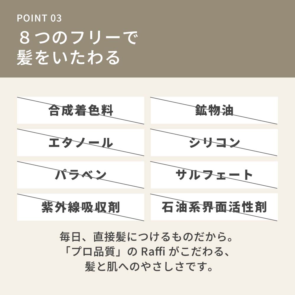 Raffiシャンプー1,000ml×1本、Raffiトリートメント1,000ml×1本、洗い流さないトリートメント(クリーム) 150ml×1本